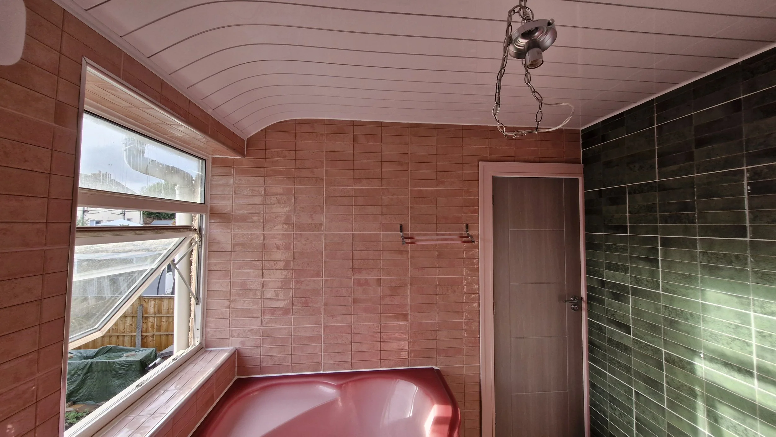 Due to the sloped ceiling, we designed and installed a bespoke curved ceiling feature, creating a visually striking finish while maintaining functionality within the limited headroom.